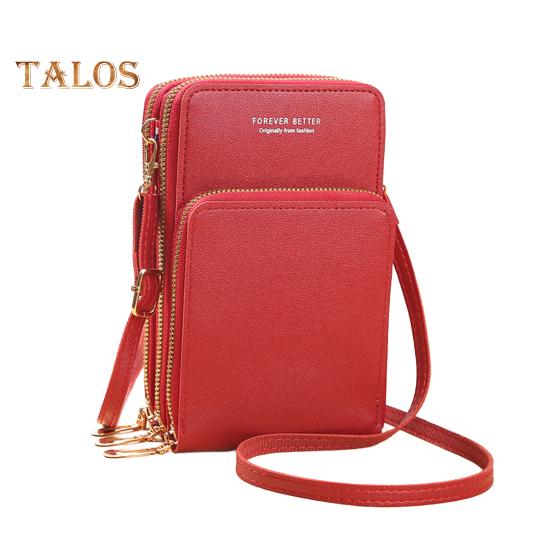 Сумка для мобильного телефона с прозрачным сенсорным окошком, сумка-слинг, несколько отделений, искусственная кожа, регулируемый ремень, кошелек через плечо вино красного