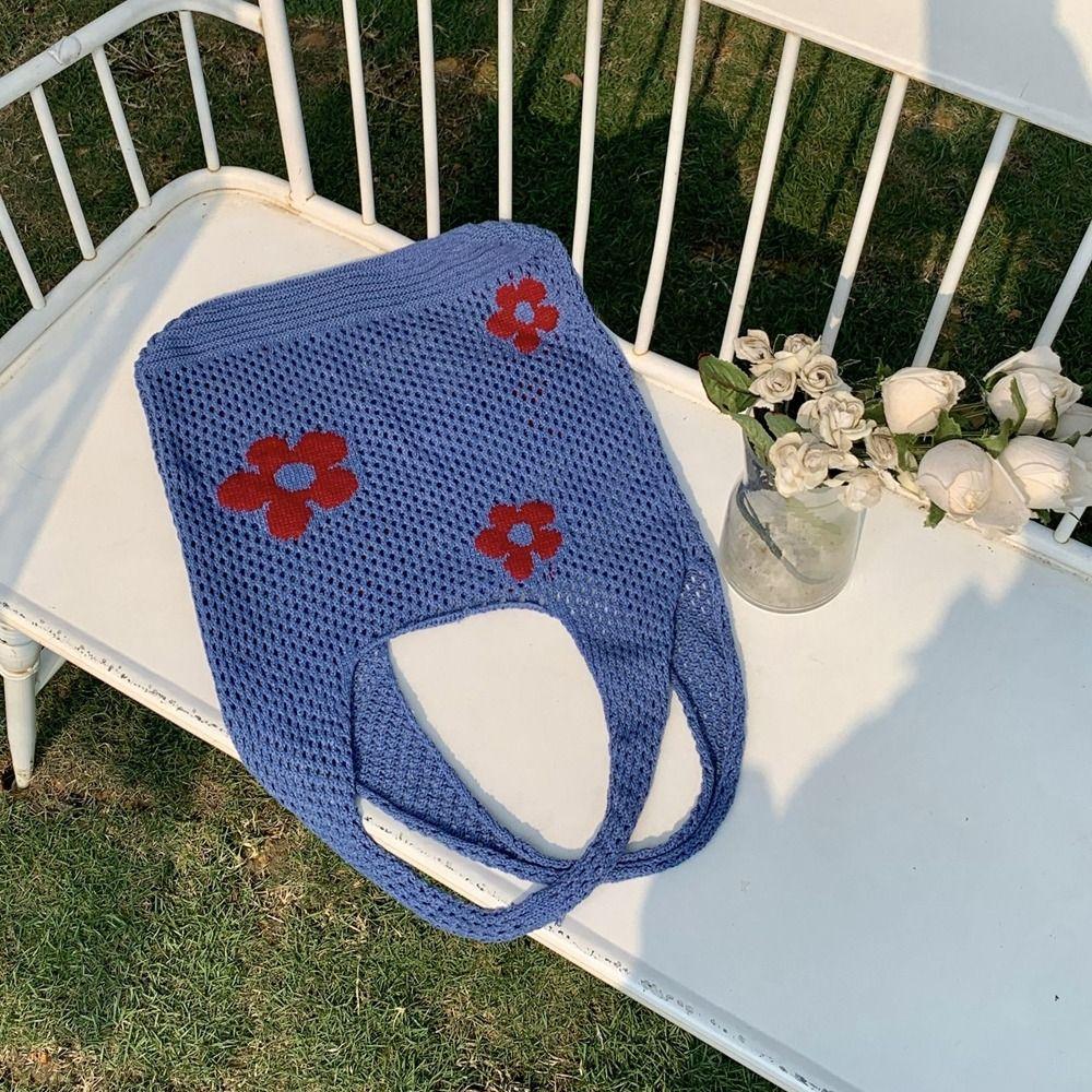 Сумка для покупок в этническом стиле, сетчатая сумка для хранения, сумка через плечо, вязаная сумка, женская сумочка, сумка-тоут темно-синий