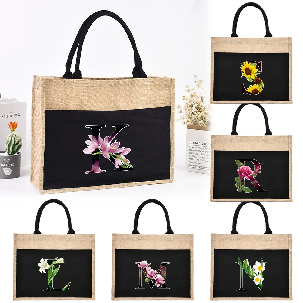 Сумка для покупок из хлопка и льна, ручная льняная сумка, складная портативная сумка-органайзер, серия цветочных цветных принтов