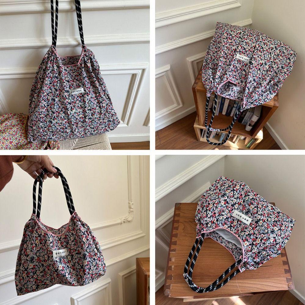 Сумка для покупок с цветочным принтом на шнурке, большая вместительная сумка на шнурке с цветочным принтом, сумка для покупок