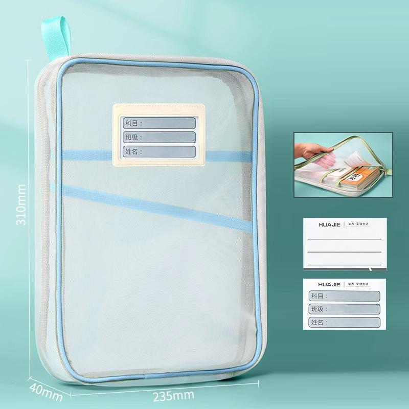 Сумка для хранения канцелярских принадлежностей формата А4, двухслойная сетчатая сумка на молнии, большая вместимость, папки-органайзеры, школьные канцелярские принадлежности, сумка для канцелярских принадлежностей небесно-голубой
