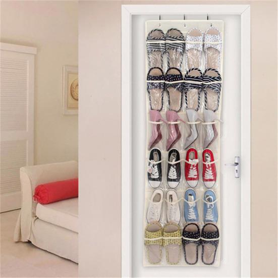 Сумка для хранения обуви за дверью, подвесная, большая вместимость, 24 прозрачных кармана, большой несущий органайзер для обуви, держатель для мелочей в общежитии, с 3 крючками