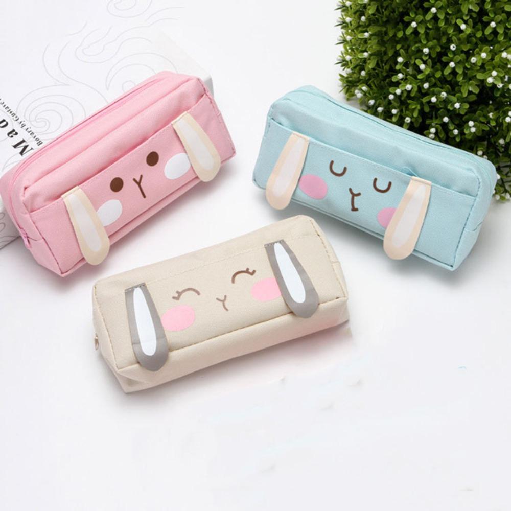 Сумка для хранения пенала с ушками кролика, сумка для ручек с рисунком кролика, школьные принадлежности розовый