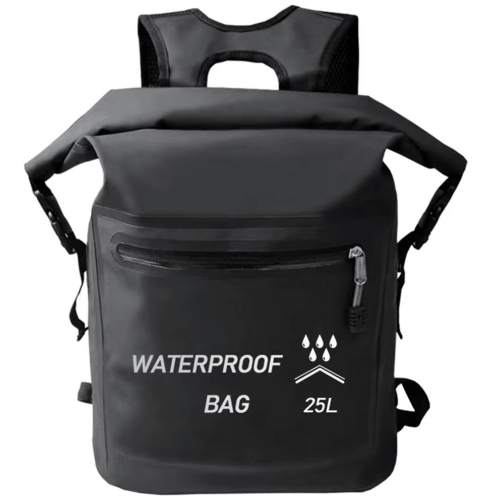 Сумка для хранения пляжных вещей с застежкой ролл-топ, карман на молнии, рюкзак для плавания, плавание чёрный