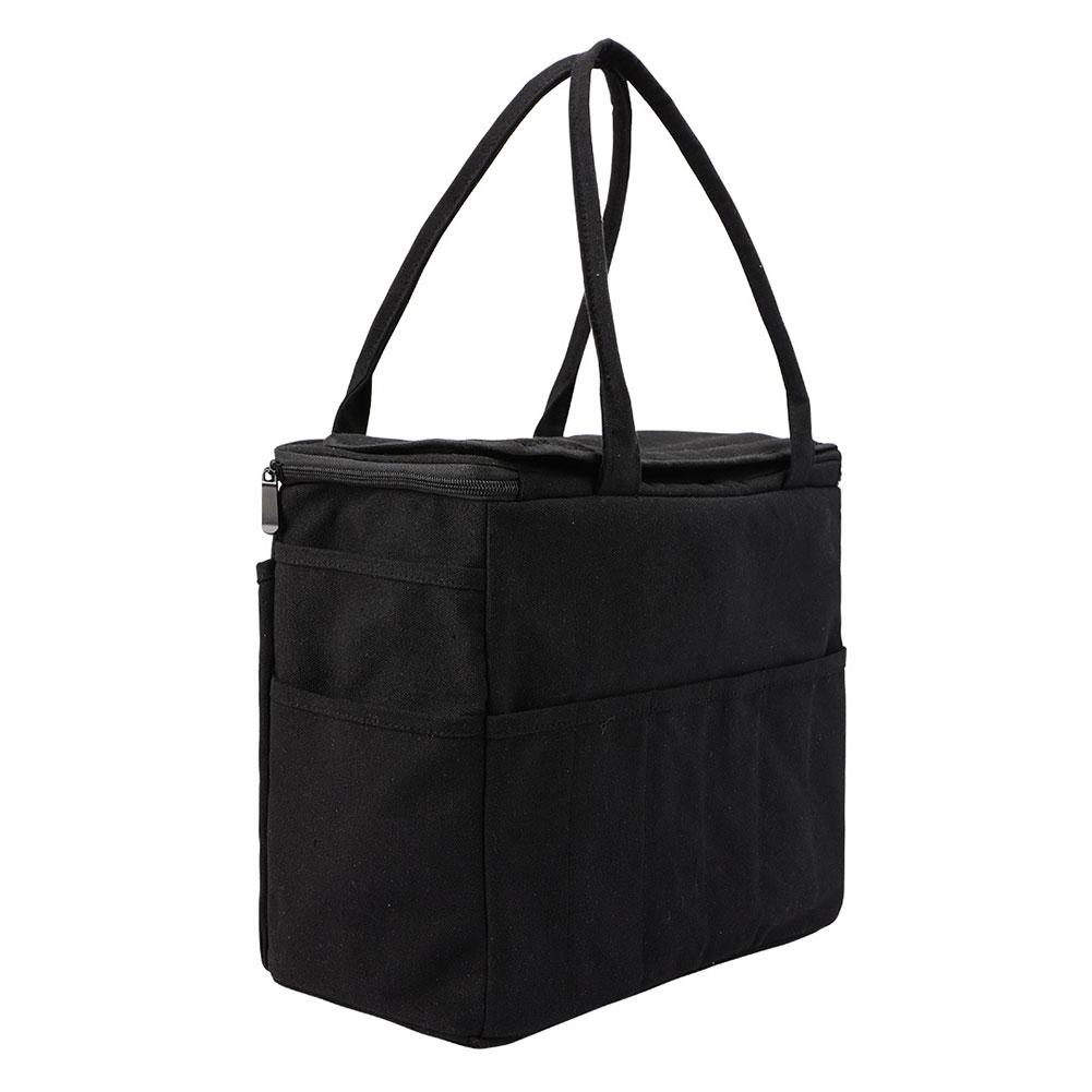 Сумка для хранения пряжи из холста, большая вместительная сумка для вязания крючком, прочная сумка с многослойными карманами для крючков и спиц чёрный