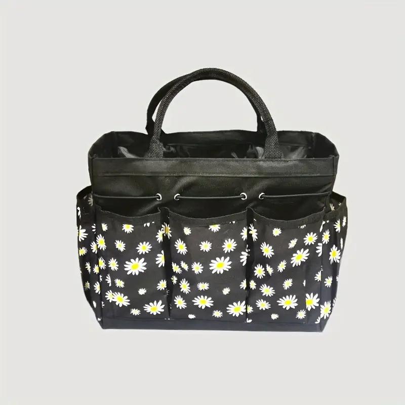 Сумка для хранения садового инструмента 600D Оксфордская ткань Большая вместимость Сумка-органайзер для инструментов с несколькими карманами для садовых работ, работ во дворе и на газоне чёрный