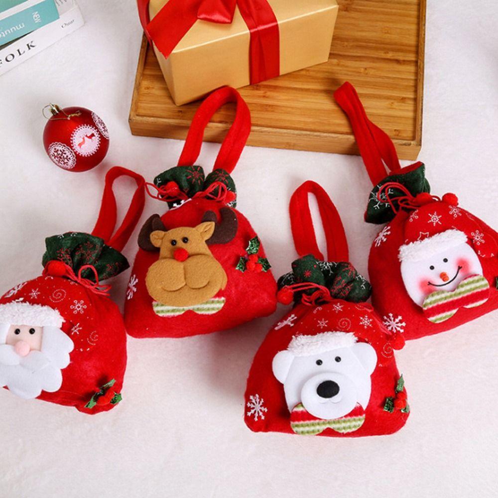 Сумка для хранения чулок в виде лося Рождественские сумки со шнурком Упаковочный мешочек Рождественский подарочный пакет Мешки для конфет A