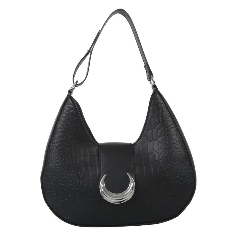 Сумка женская весна-лето 2024 года, новая модная сумка через плечо с крокодиловым узором, сумка под мышкой, простая универсальная сумка в форме полумесяца чёрный