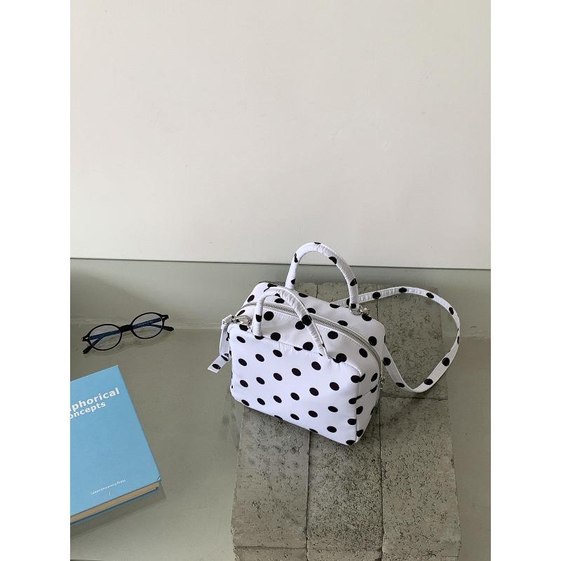 Сумка женская летняя новая маленькая квадратная сумка нишевая в горошек боулинг через плечо белый