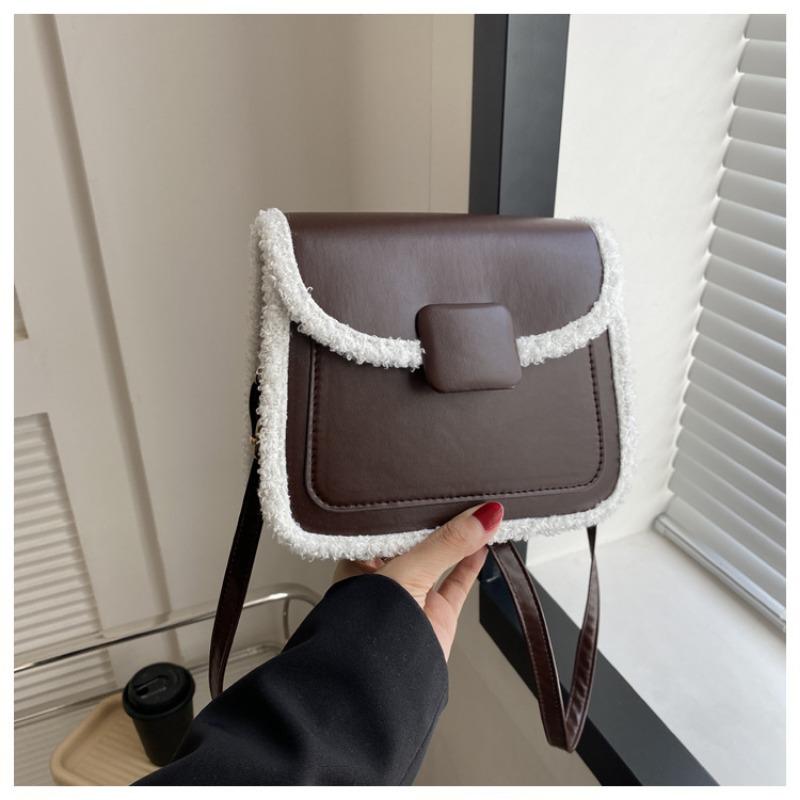 Сумка женская осенне-зимняя новая плюшевая лоскутная сумка-мессенджер простая для поездок темпераментная универсальная на плечо маленькая квадратная сумка One size