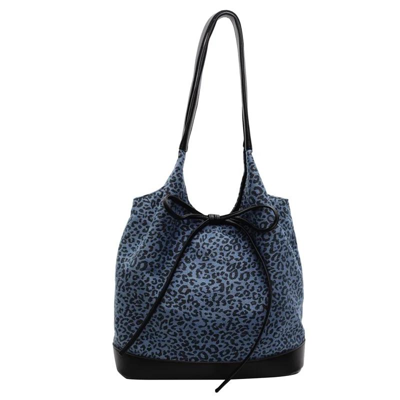 Сумка из денима с леопардовым принтом в стиле ретро, новая версия, корейская повседневная, вместительная, универсальная сумка через плечо