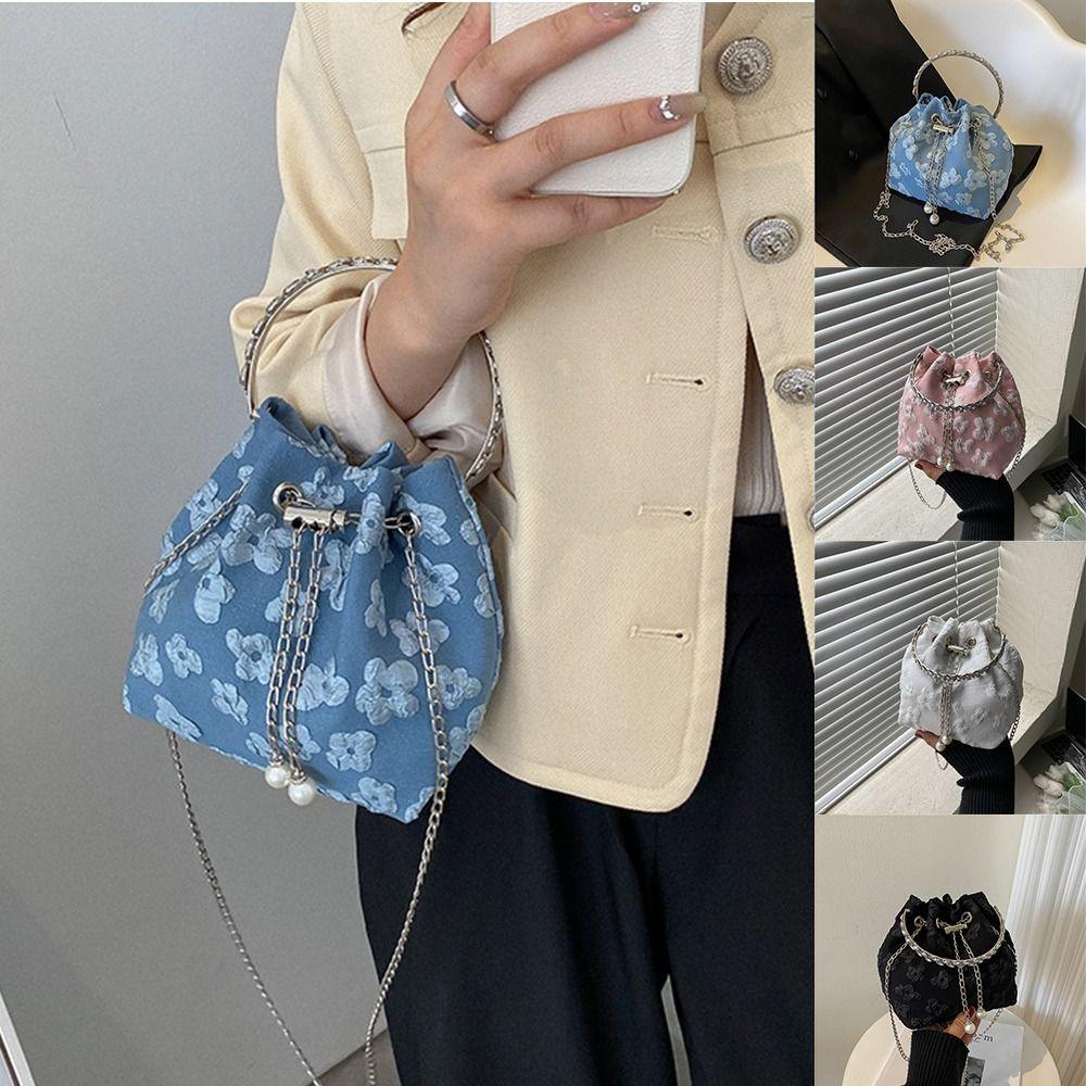 Сумка из джинсовой ткани, маленькая сумка-мессенджер в корейском стиле, сумка-ведро с цветочным шнурком, детская сумка