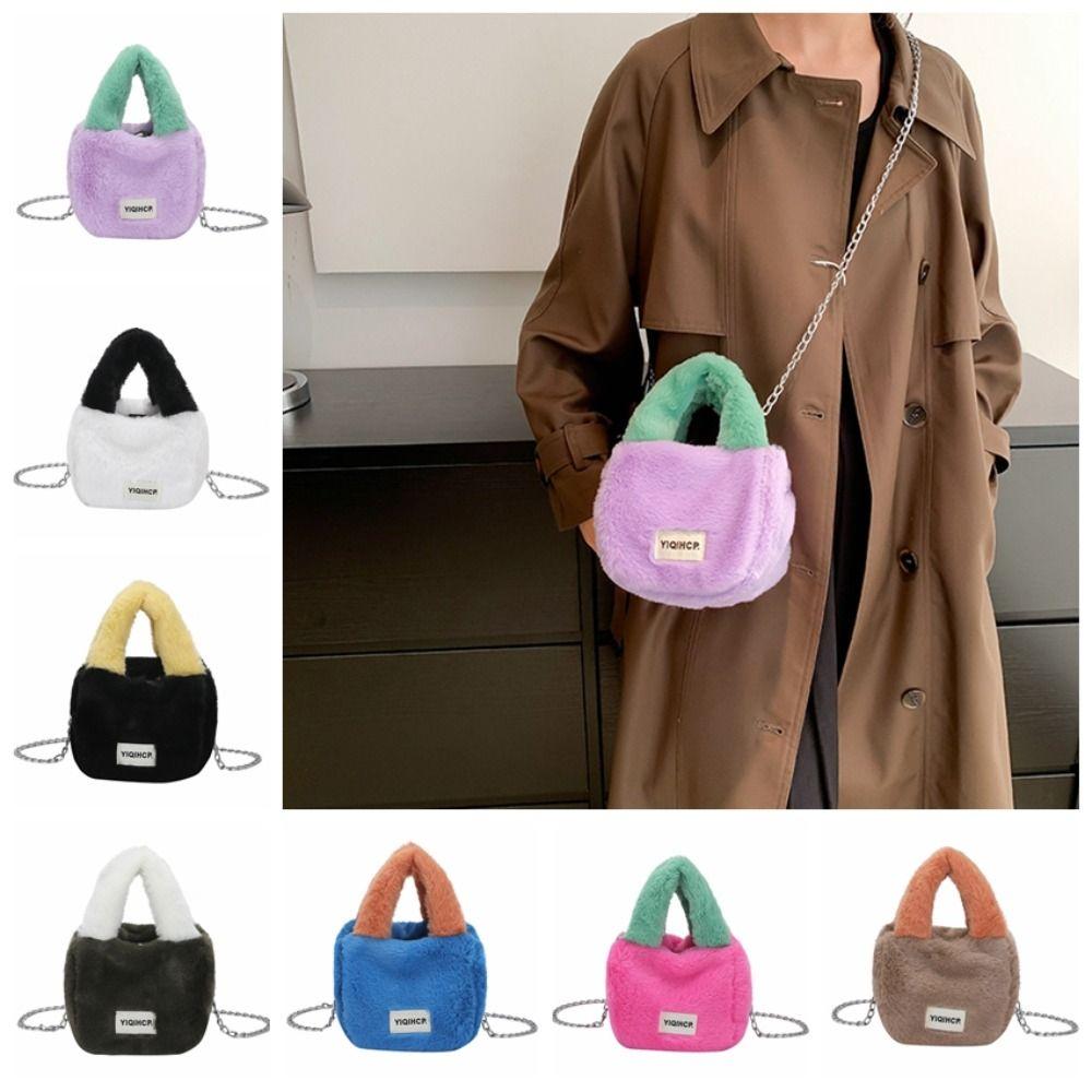 Сумка из искусственного меха кролика в корейском стиле Металлическая цепочка Маленькая сумка для телефона Повседневная плюшевая сумка-ведро для девочек