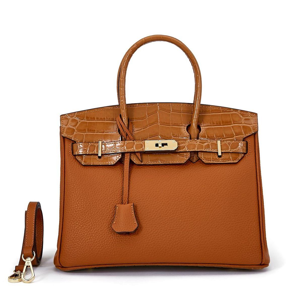 Сумка из коровьей кожи платинового цвета с цветными блоками, большая вместимость, узор личи, женская сумка, модная и универсальная, из натуральной кожи, женская сумка 30x17x23cm коричневый