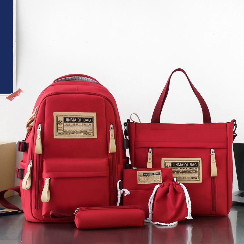 Сумка из пяти предметов, женский рюкзак большой вместимости, мужской рюкзак для школьников младших классов, сумка на плечо для студентов 4-6 классов красный