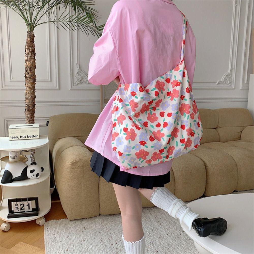 Сумка из ткани с цветочным принтом, полосатая холщовая сумка на плечо, повседневная холщовая сумка с цветочным принтом для девочек style 2