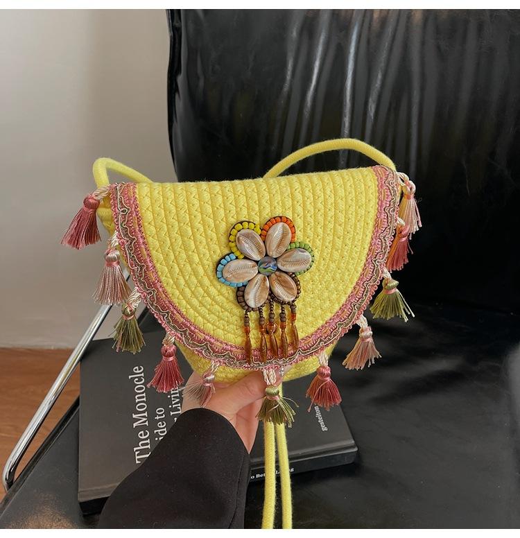 Сумка из толстой плетеной веревки ручной работы, новая плетеная сумка из соломы с кисточкой высокой ценности, женская сумка-мессенджер жёлтый