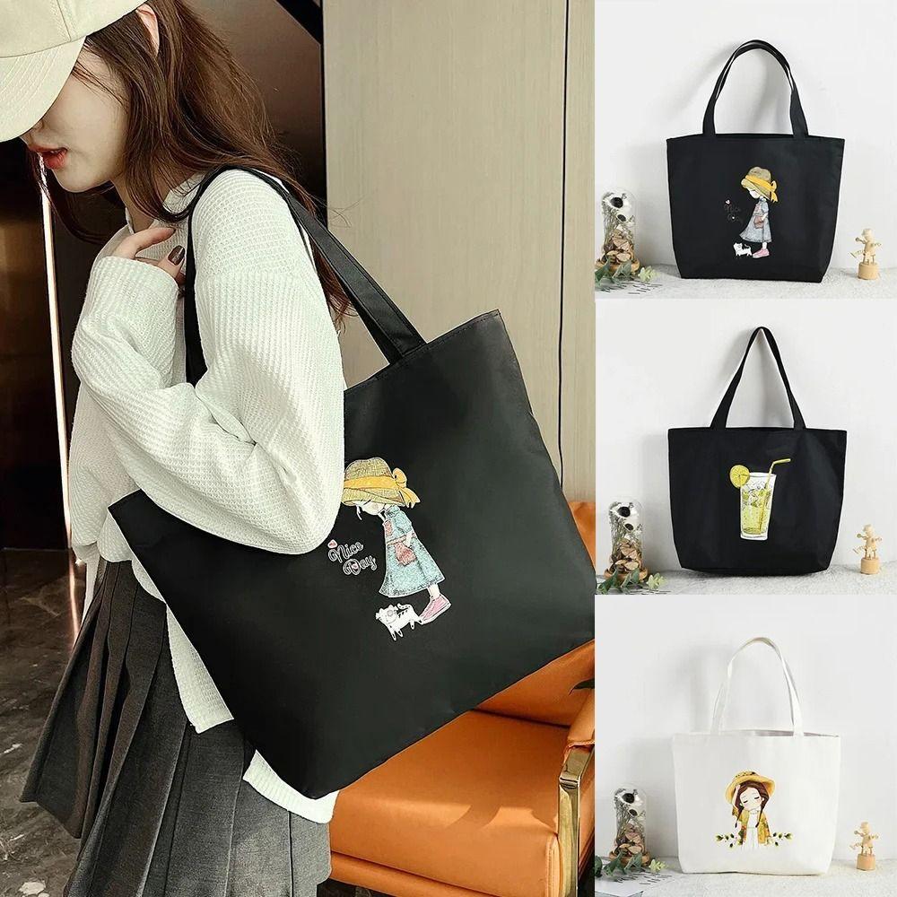 Сумка из холста с мультяшным принтом, большая вместительная сумка-тоут, симпатичная сумка на плечо с принтом