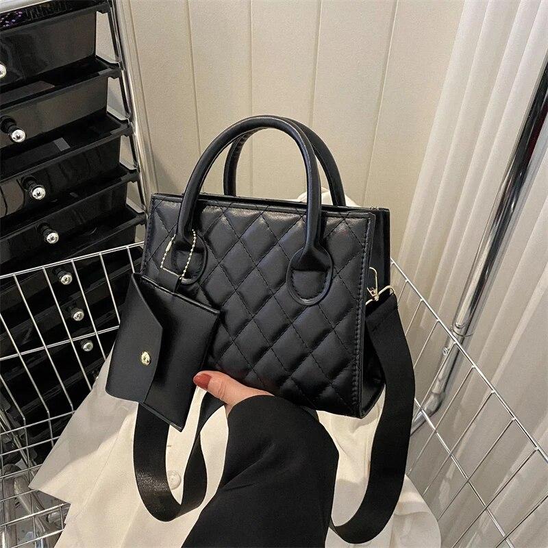 Сумка из цельного ПУ-материала с ромбовидным узором и широким плечевым ремнем, сумка через плечо на одно плечо