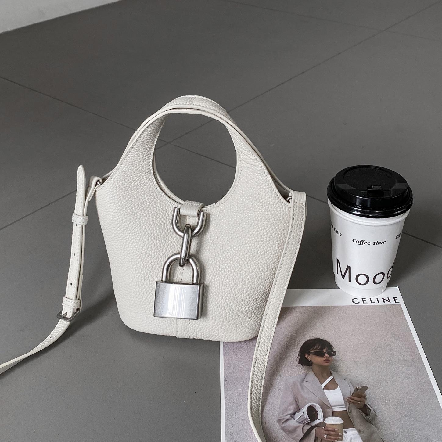 Сумка-корзина для овощей из коровьей кожи с замком, персонализированная и модная, сумка на одно плечо, большая вместительная сумка-тоут 23x15x25cm белый