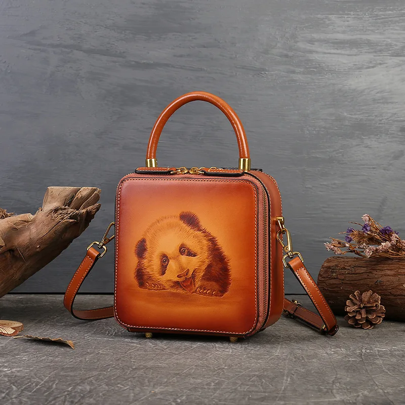 Сумка кросс-боди Женская, кожаная маленькая квадратная сумка на одно плечо в литературном ретро-стиле с пандой для пирографии