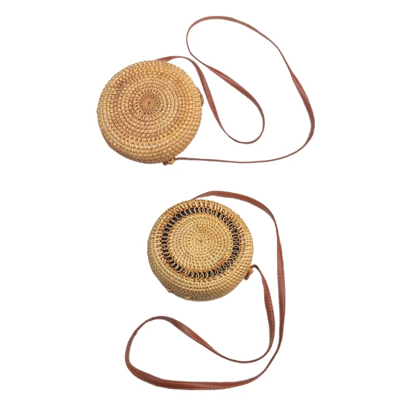 Сумка кросс-боди из ротанга ручной работы, портативная Плетеная соломенная сумочка-тоут, простой дизайн, летняя пляжная ручная сумка для от...