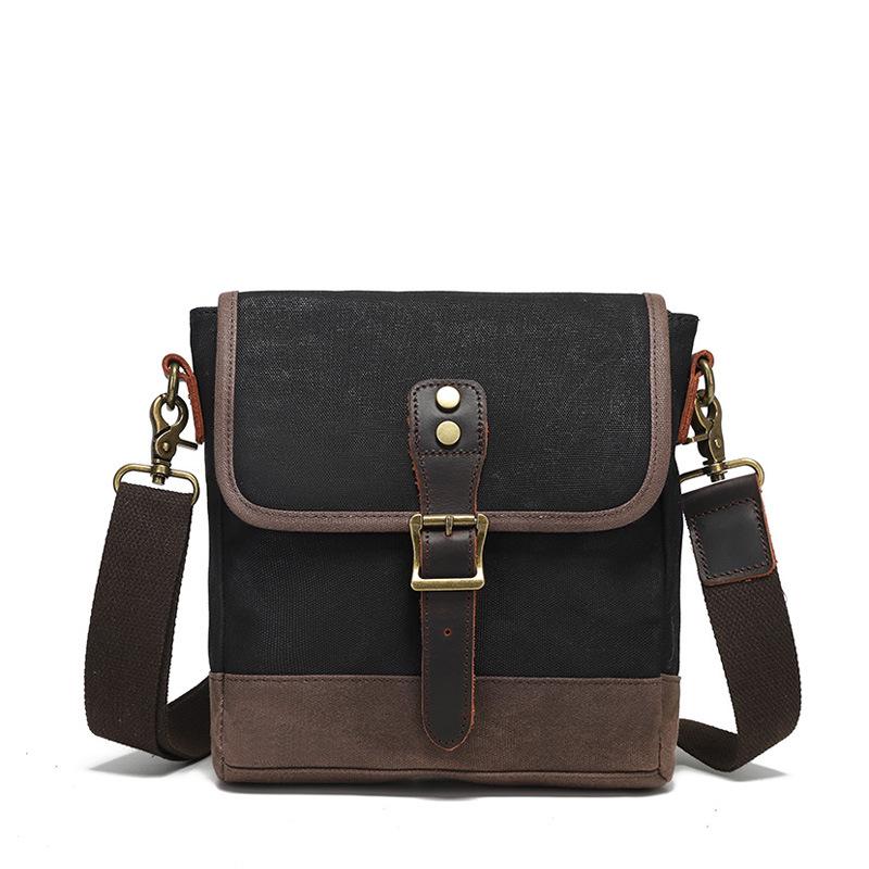 Сумка-мессенджер из кожи и холста в стиле ретро: Прочная мужская сумка через плечо и нагрудная сумка чёрный