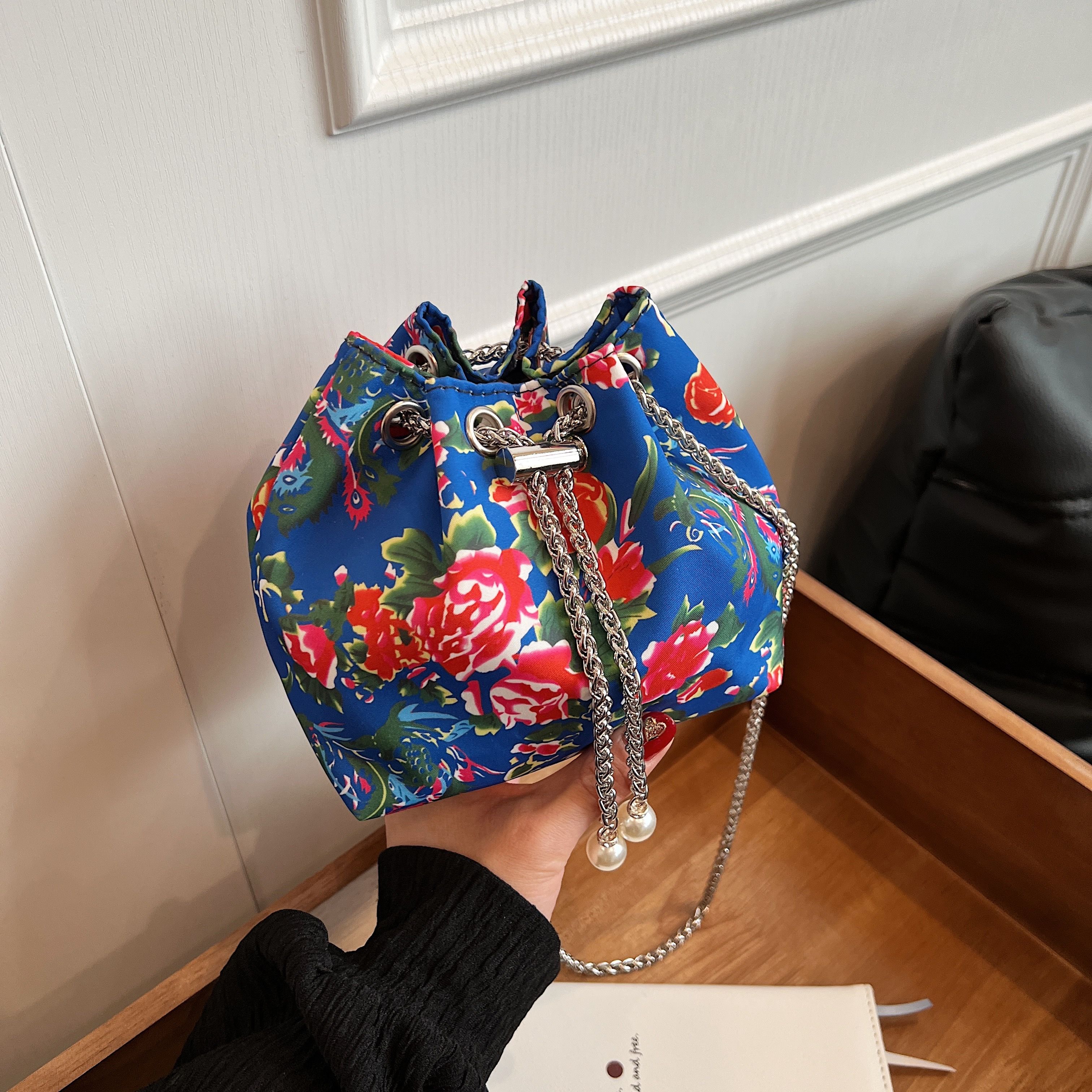 Сумка на одно плечо для женщин, большой цветок, модная, большая вместительная сумка через плечо с цепочкой, ручная сумка-ведро синий