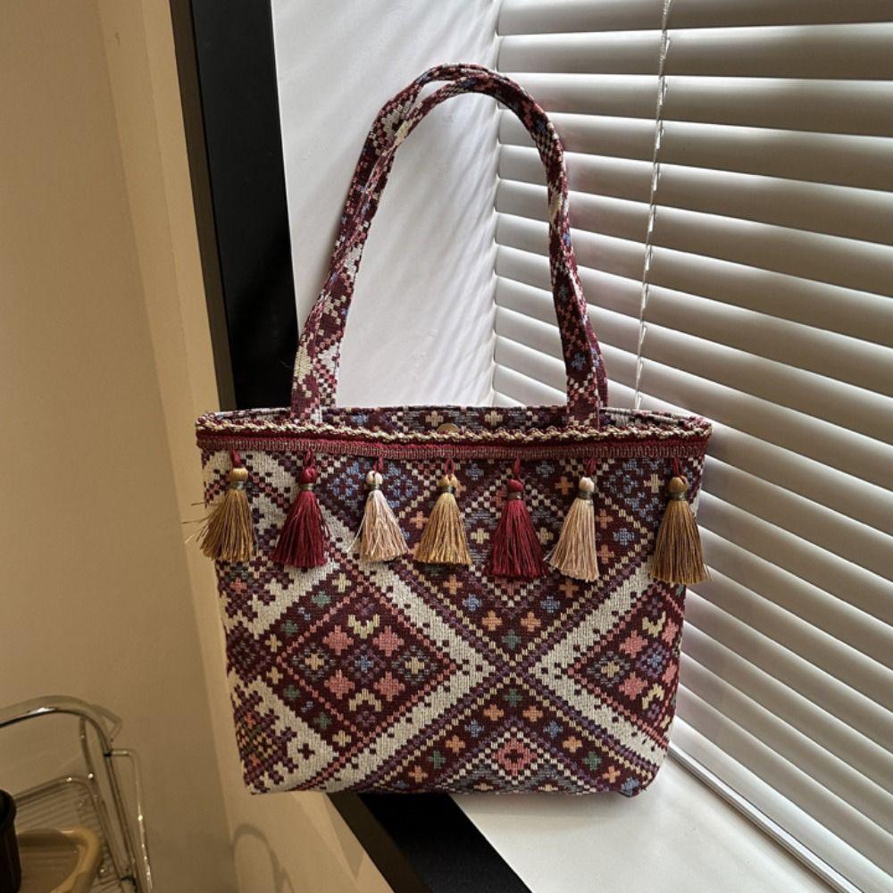 Сумка на плечо в этническом стиле с кисточками, сумка через плечо с вышивкой в китайском стиле, модная холщовая сумка для путешествий