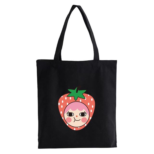 Сумка на плечо с мультяшным клубничным принтом, женская эстетичная сумка-шопер Kawaii, модная женская складная сумка, холщовая сумка 24*26cm