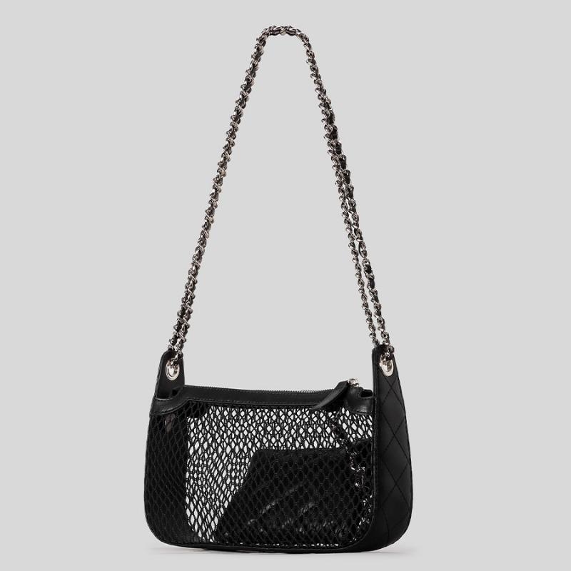 Сумка плетеная с цепочкой и ажурным узором Модная и универсальная сумка через плечо чёрный