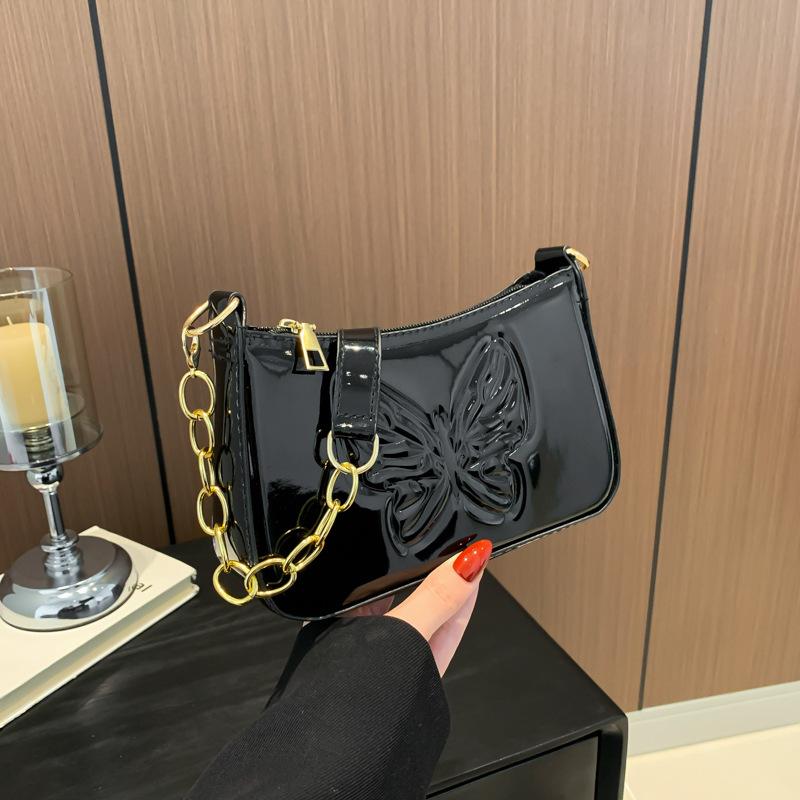 Сумка подмышкой из глянцевой лакированной кожи с тиснением в виде бабочки, новая женская сумка через плечо с цепочкой и текстурой, модная женская сумка в стиле ретро