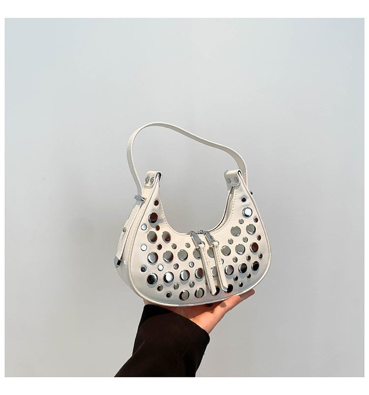 Сумка под мышкой с заклепками Весна Лето Новая Мода Нишевая Сумка на плечо Повседневная Женская Универсальная Сумка-пельмень белый