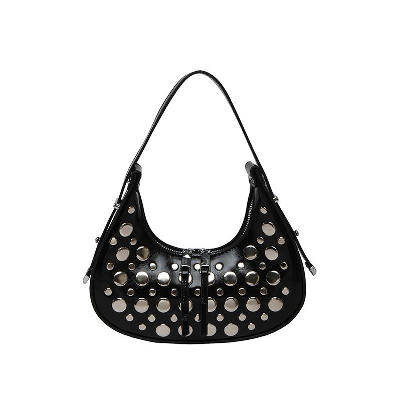 Сумка под мышкой с заклепками Весна Лето 2025 Новая Корейская Версия Модная Нишевая Сумка на Плечо Повседневная Женская Универсальная Сумка-пельмень чёрный