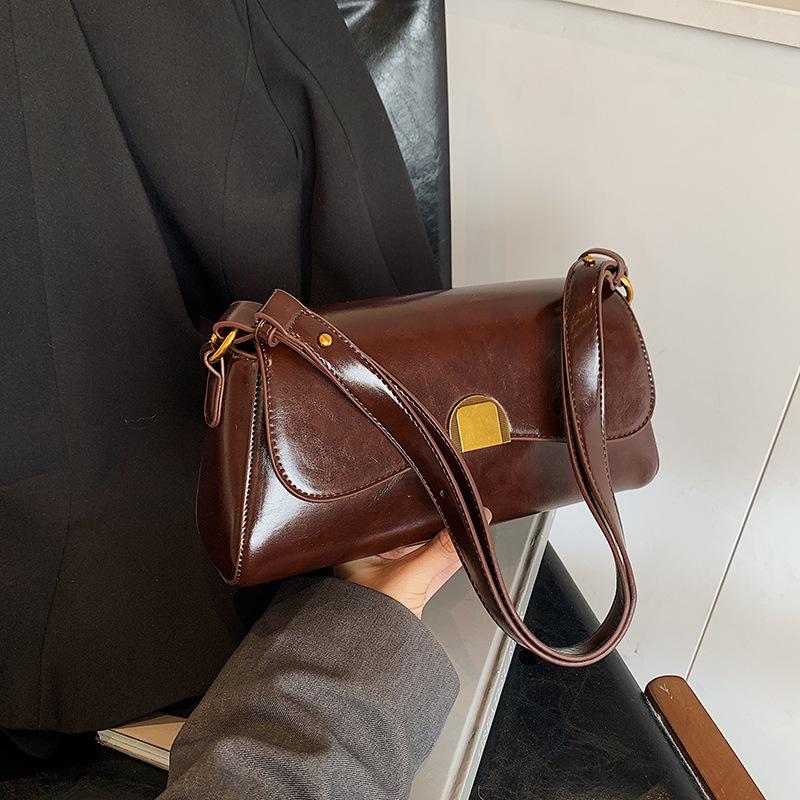 Сумка премиум-текстуры в стиле ретро, нишевая, женская, новая коллекция осень-зима 2025, универсальная сумка-мессенджер, сумка на одно плечо, сумка под мышкой, сумка-метод, сумка-палочка темно-коричневого