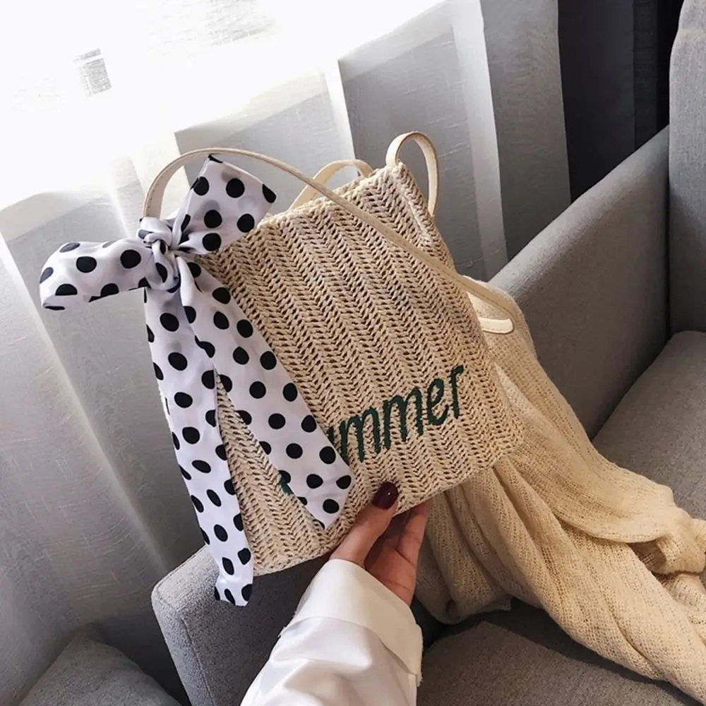 Сумка ручной работы, вязаная круглая женская соломенная сумка для девочек, сумка через плечо, соломенная сумка, летняя пляжная сумка