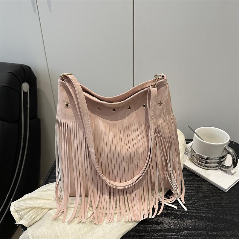 Сумка с кисточкой модная большая вместительная на плечо популярная новая нишевая сумка-мессенджер женская розовый