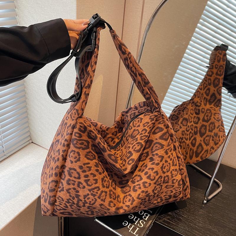 Сумка с леопардовым принтом женская большой вместимости 2025 новая осенне-зимняя повседневная на плечо подмышку универсальная рабочая сумка-тоут для поездок