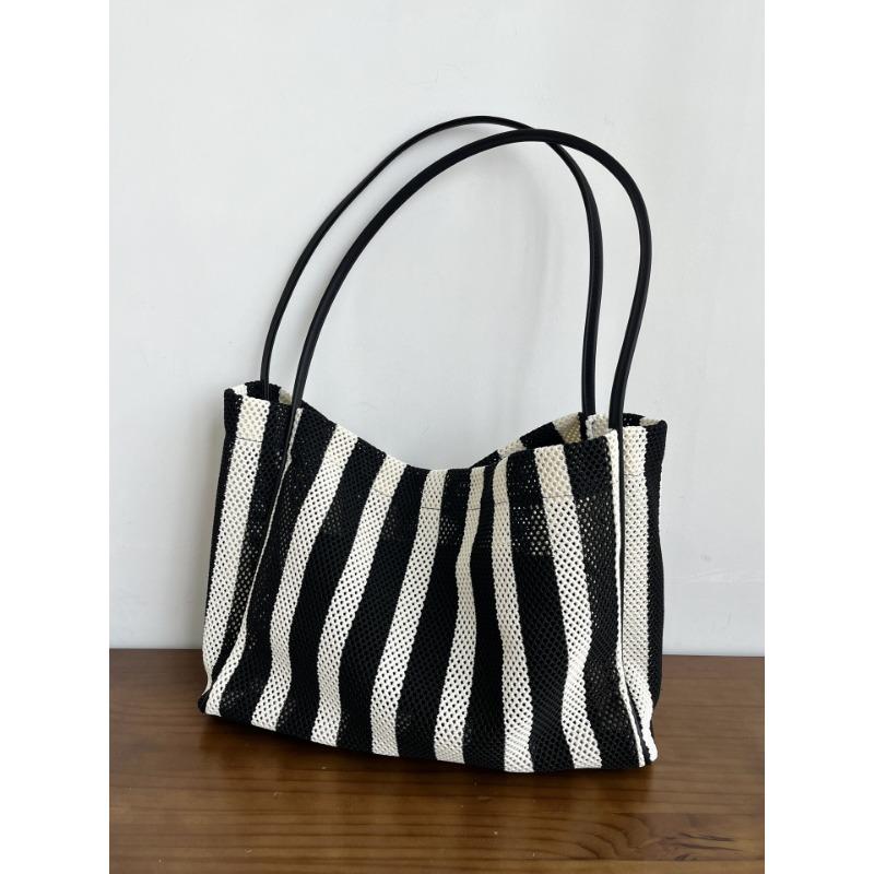 Сумка-тоут Легкая плетеная полосатая сумка через плечо для женщин Большая одноплечевая сумка для поездок на работу чёрный