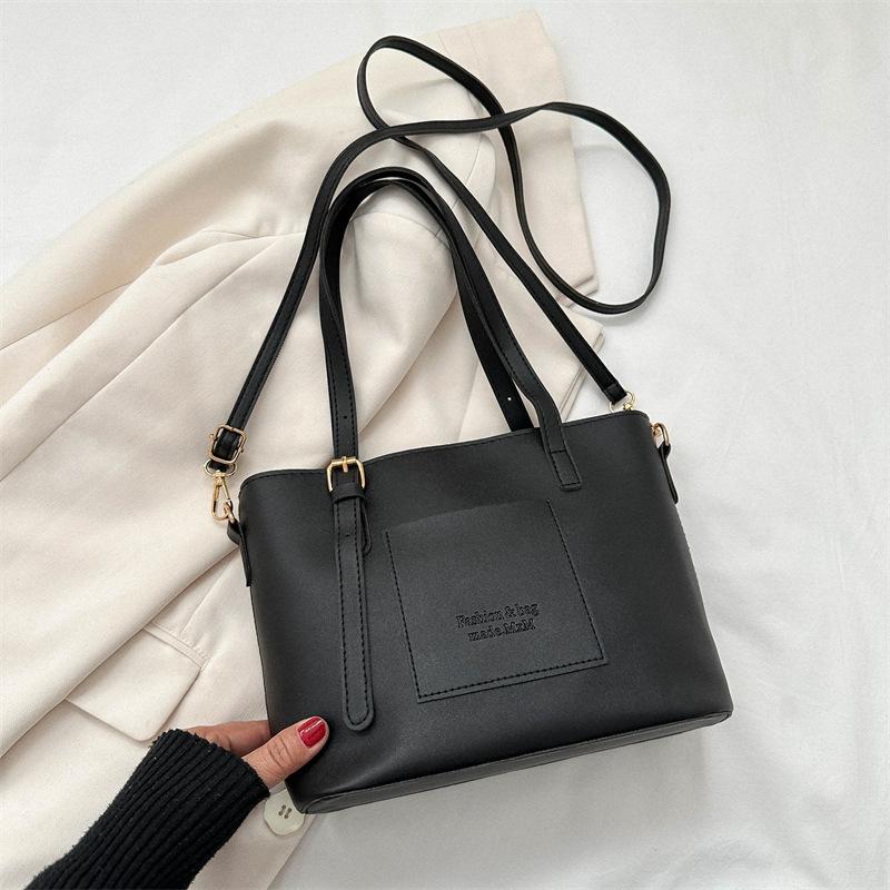 Сумка-тоут большой вместимости Niche design 2024 новая повседневная сумка для поездок на работу ретро персонализированная женская сумка через плечо чёрный