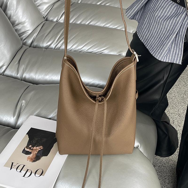 Сумка-тоут, Сумка-ведро из натуральной кожи, Женская одноплечевая повседневная большой вместимости, Классическая для поездок на работу, Сумка под мышкой One Size серый