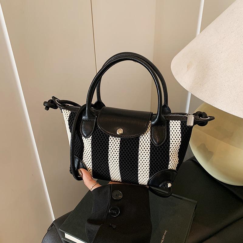 Сумка-тоут в контрастную полоску, весна и лето, новая модная сумка через плечо, высококлассная сумка-мессенджер, сумка-пельмень чёрный