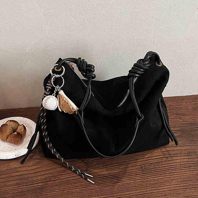 Сумка-тоут из замши в стиле ретро для женщин, осень-зима, новая, большая вместительная сумка через плечо, темперамент, сумки для поездок под мышками