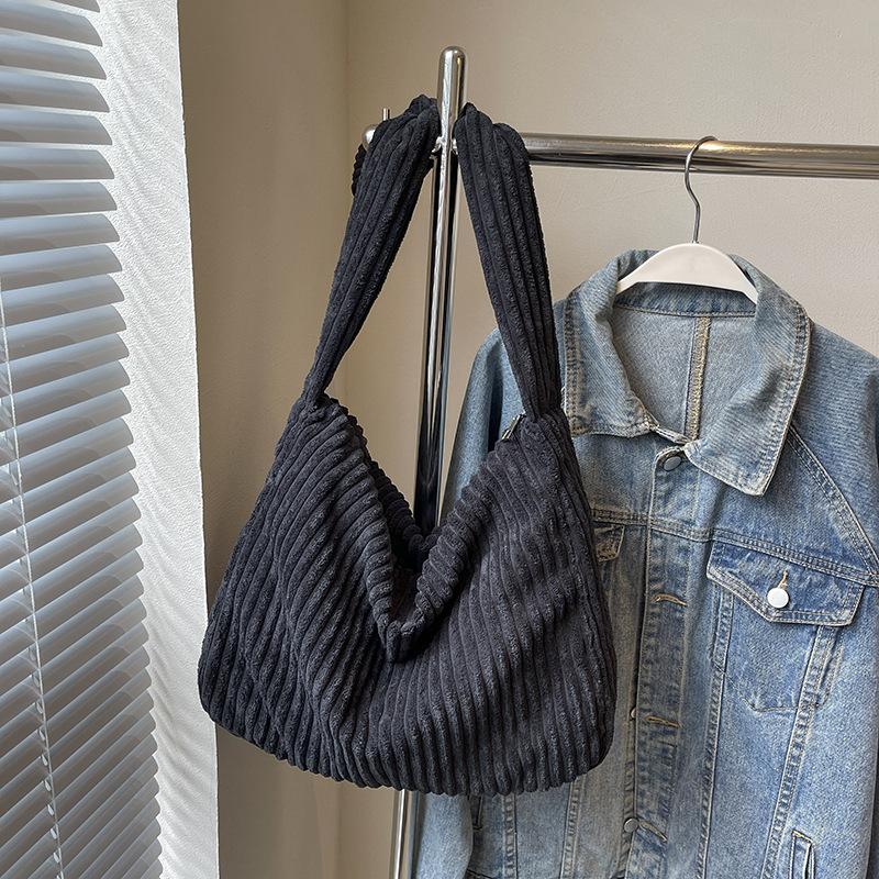 Сумка-тоут модная корейская версия большая вместимость сумка для покупок повседневная литературная холщовая сумка простая ретро на плечо женская сумка чёрный