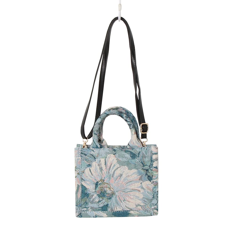 Сумка-тоут на плечо восточная большая плечевая цветочная ботаническая женская, сумка, принт по всей поверхности, офис, поездки на работу, вместимость, дамская сумка, школа, сумка, синий