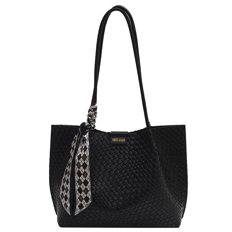 Сумка-тоут премиум-класса с тканым узором, универсальная, женская, новая коллекция осень-зима 2025, с шелковым платком, большой вместимости, для поездок на работу чёрный