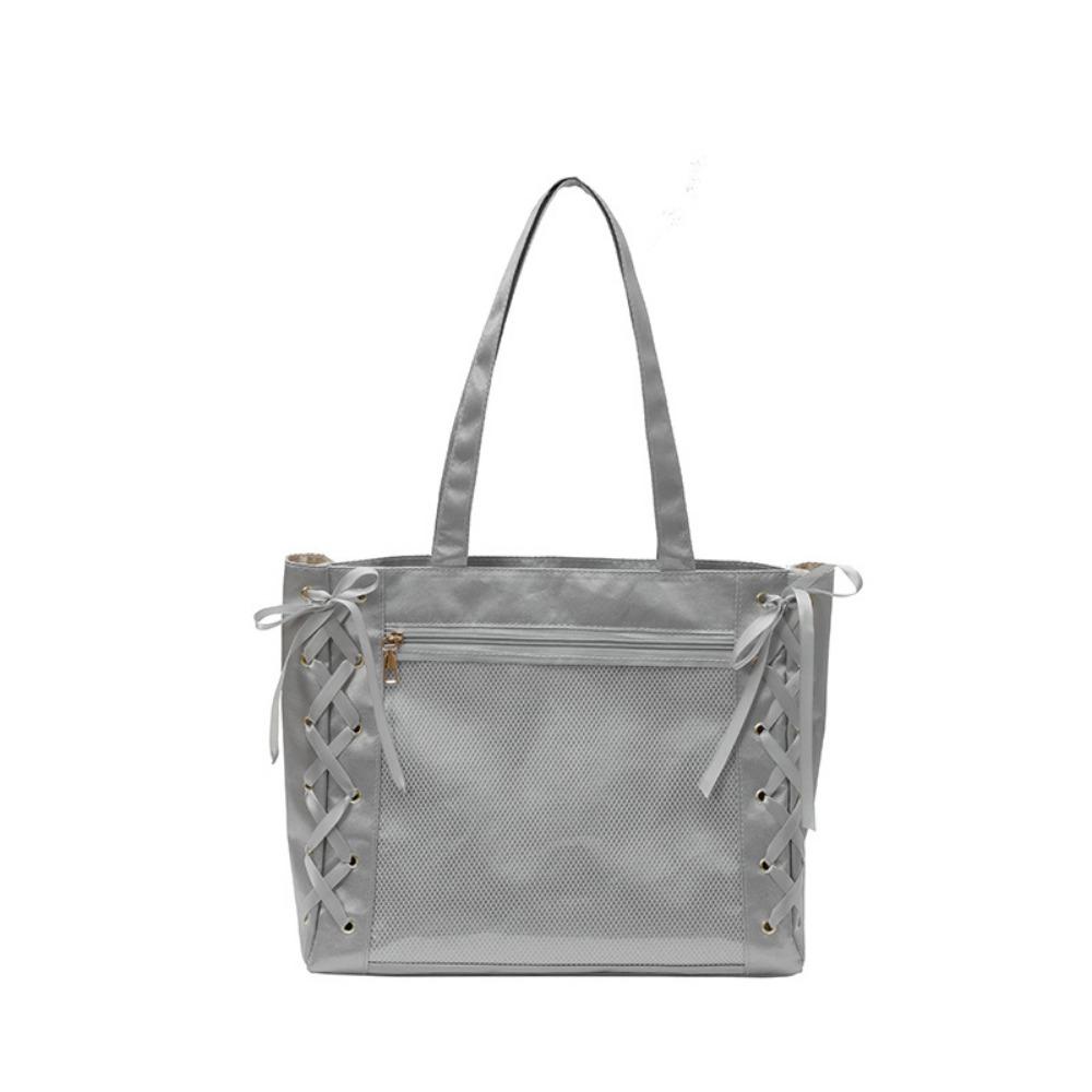 Сумка-тоут с бантом и лентой, милая ита-сумка, большая вместимость, женская сумка с лентой, повседневная одежда серебряный