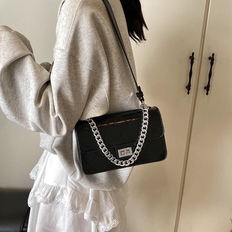 Сумка-тоут 2025 новая трендовая ромбовидная женская сумка модная сумка на плечо текстурная весенне-летняя универсальная сумка-мессенджер маленькая квадратная сумка 22*5.5*14 чёрный