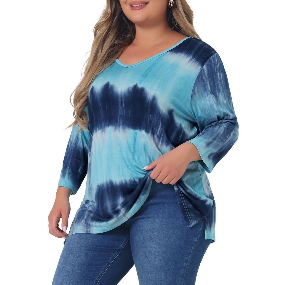 Женский топ в полоску свободного кроя с V-образным вырезом и рукавами 3/4 больших размеров Agnes Orinda, цвет Lake Blue