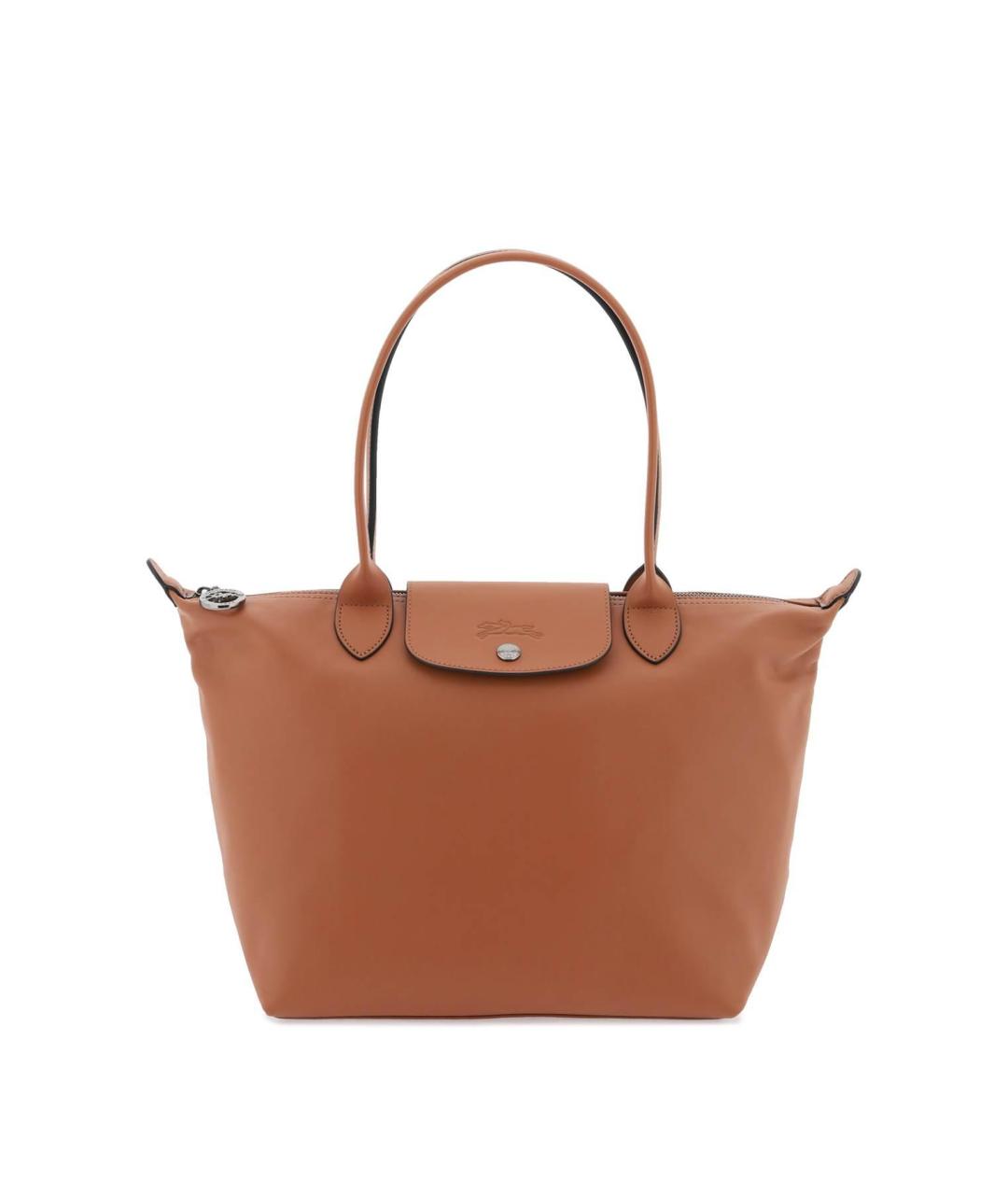 Le Pliage Xtra tote bag from Longchamp made of leather with a double handle, embossed logo flap and snap button. The zipper closure has a metal signature logo puller, and the width of the handles creates a double carry or shoulder look.